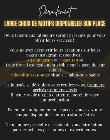 Chez Astrea Piercing, nous aimons aller à votre rencontre et vous offrir des expériences uniques en partenariat avec d'autres artistes partageant nos valeurs. Lors de ces événements, nous vous proposons non seulement de découvrir notre sélection de bijoux haut de gamme, mais aussi de profiter d'une séance de piercing dans un cadre original et convivial.